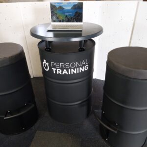 Baril 220 L décoratif & support flyers - entièrement Personnalisable : votre couleur au choix (RAL spécifique) votre Nom et Logo de votre club Finition mat ou brillant Conçu, fabriqué et assemblé en France ! Livraison Sécurisée 100% offerte France métropolitaine ! *PROJET ÉLIGIBLE SUBVENTION AADEV -50% !