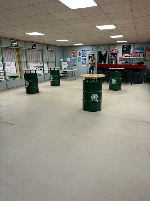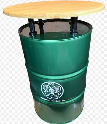Baril 220 L Mange-debout - entièrement Personnalisable : votre couleur au choix (RAL spécifique) Nom et Logo de votre club plateau au choix Finition mat ou brillant Conçu, fabriqué et assemblé en France! Livraison Sécurisée 100% offerte France métropolitaine ! *PROJET ÉLIGIBLE SUBVENTION AADEV -50% !