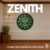 Avec son diamètre de 45 cm, ZENITH offre une lecture de l’heure claire et immédiate, tout en devenant un élément de décoration à part entière. Elle contribue à structurer l’espace et à renforcer l’identité visuelle du club ou de l’événement. Personnalisation complète ZENITH est entièrement personnalisable afin de s’accorder à la charte graphique des clubs et institutions : intégration du logo au centre du cadran, choix des couleurs du fond et des marquages, possibilité d’ajouter des mentions spécifiques (club, événement, partenaire).